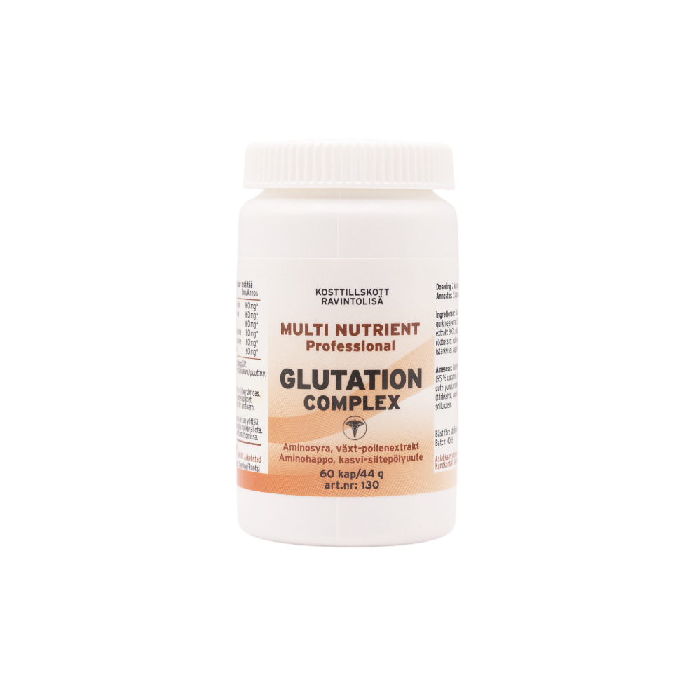 Glutation Complex är ett avancerat kosttillskott som bygger på bredspektrum- och synergiprincipen. Den innehåller tripeptiden glutation tillsammans med synergerande örtextrakt; gurkmeja, aloe vera, cikoriarot, rödbetsrot och pollen extrakt.