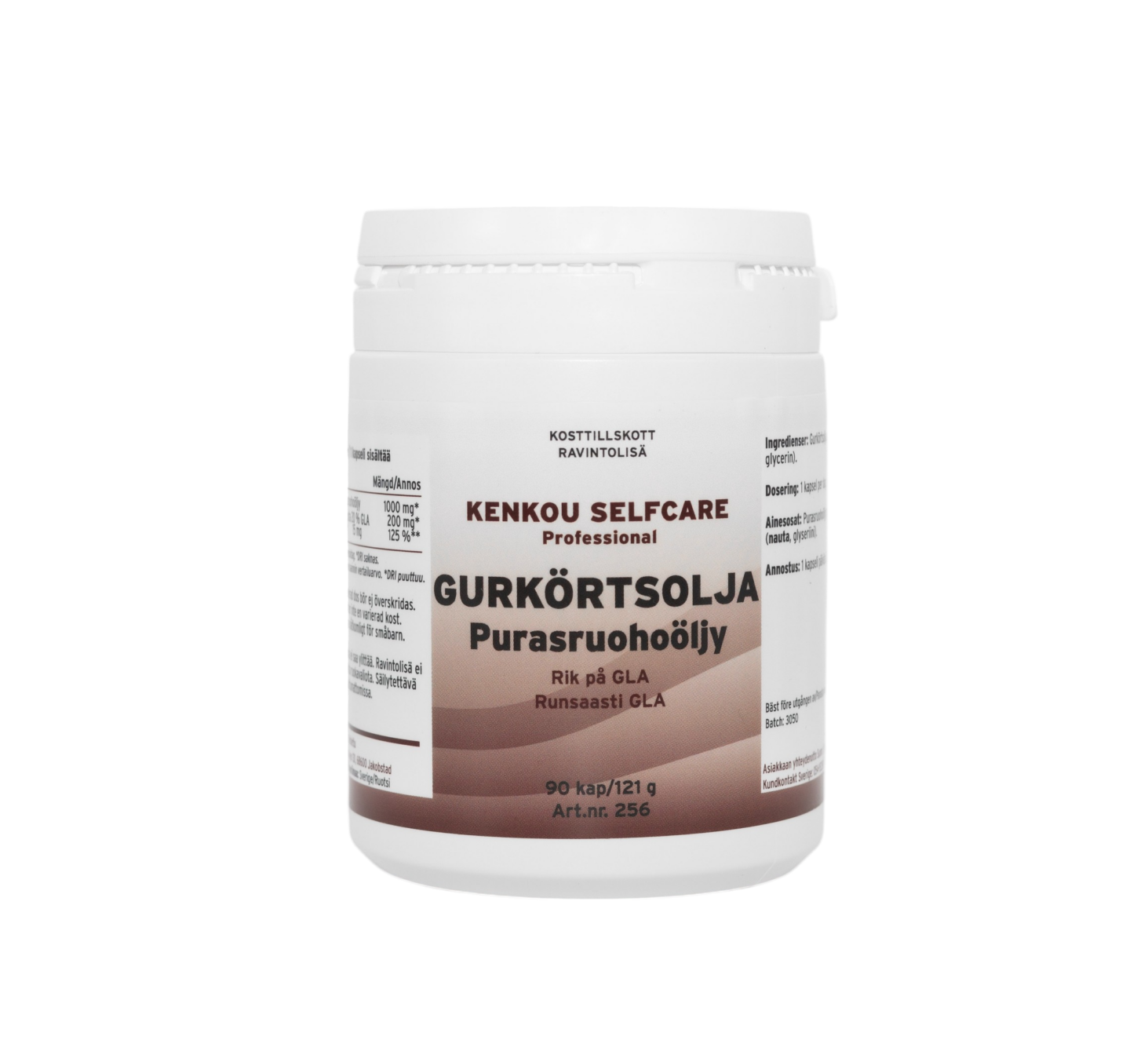 Gurkörtsolja är ett vegetabiliskt kosttillskott som utvinns ur fröna från Borago officinalis och är naturligt rik på gamma-linolensyra (GLA). Ett populärt val för dig som vill komplettera kosten med en källa till fleromättade fettsyror, särskilt i perioder då kroppen har ett ökat behov.
