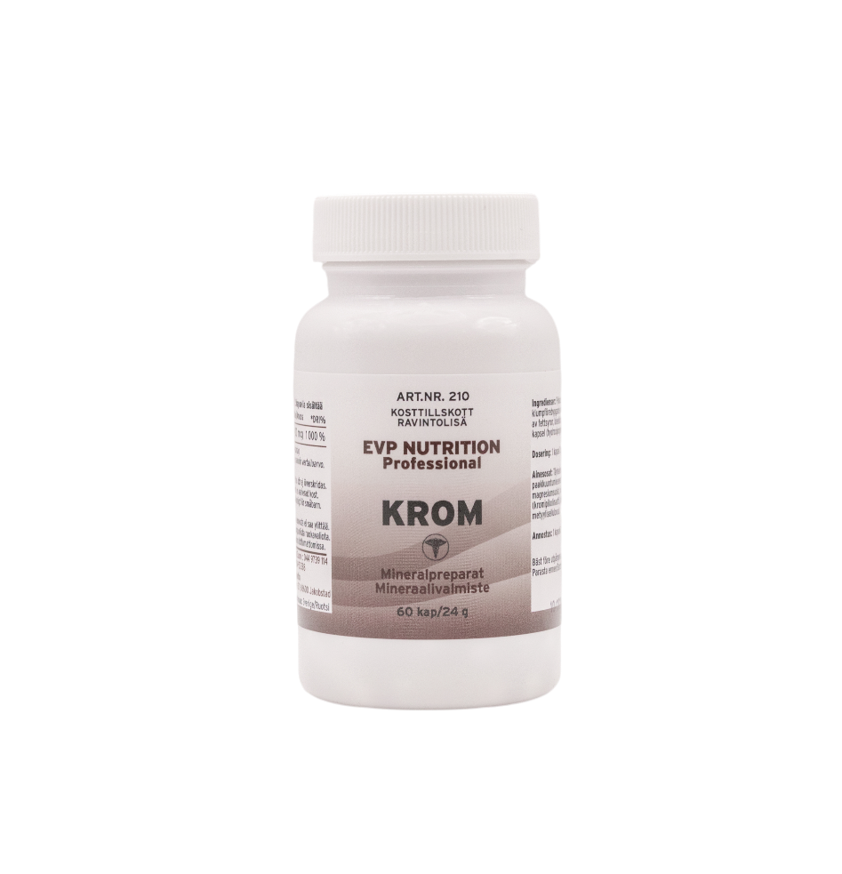 Krom är ett kosttillskott som kan stödja normalt blodsocker och kolhydratmetabolism. Personer som använder detta kosttillskott kan uppleva en balanserad energinivå och stabiliserad aptit.