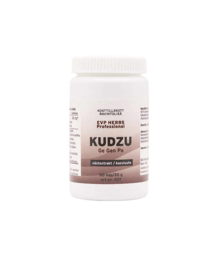 Ingredienser: Kudzu extrakt (standardiserat till 40 % flavonoider, pueraria lobata), fyllnadsmedel (mikrokristallin cellulosa), kapsel (hydroxipropylmetyl cellulosa).