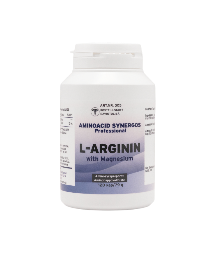Ingredienser: L-arginin, magnesium citrat, kapsel (hydroxipropylmetylcellulosa).