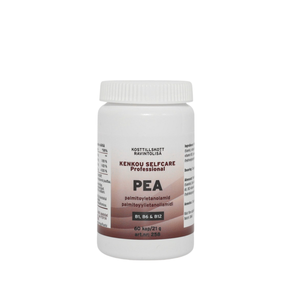 PEA (palmitoyletanolamid) är ett kroppseget, fettliknande ämne som bildas naturligt i kroppen och även förekommer i små mängder i vissa livsmedel, såsom ägg, jordnötter och sojabönor. Ämnet har uppmärksammats i forskning för sin roll i kroppens egna reglerande processer, särskilt kopplat till nervsystemets normala funktion och kroppens inre balans.