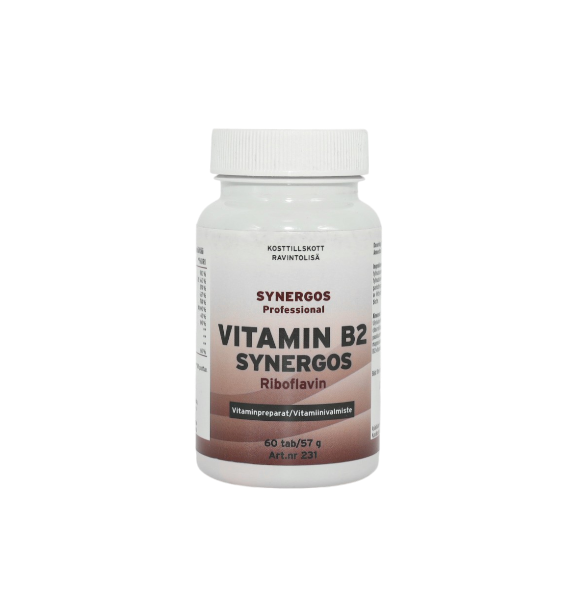 Vitamin B2 Synergos är ett avancerat kosttillskott som bygger på bredspektrum- och synergiprincipen. Varje tablett ger 200 mg riboflavin tillsammans med riboflavinsynergister.